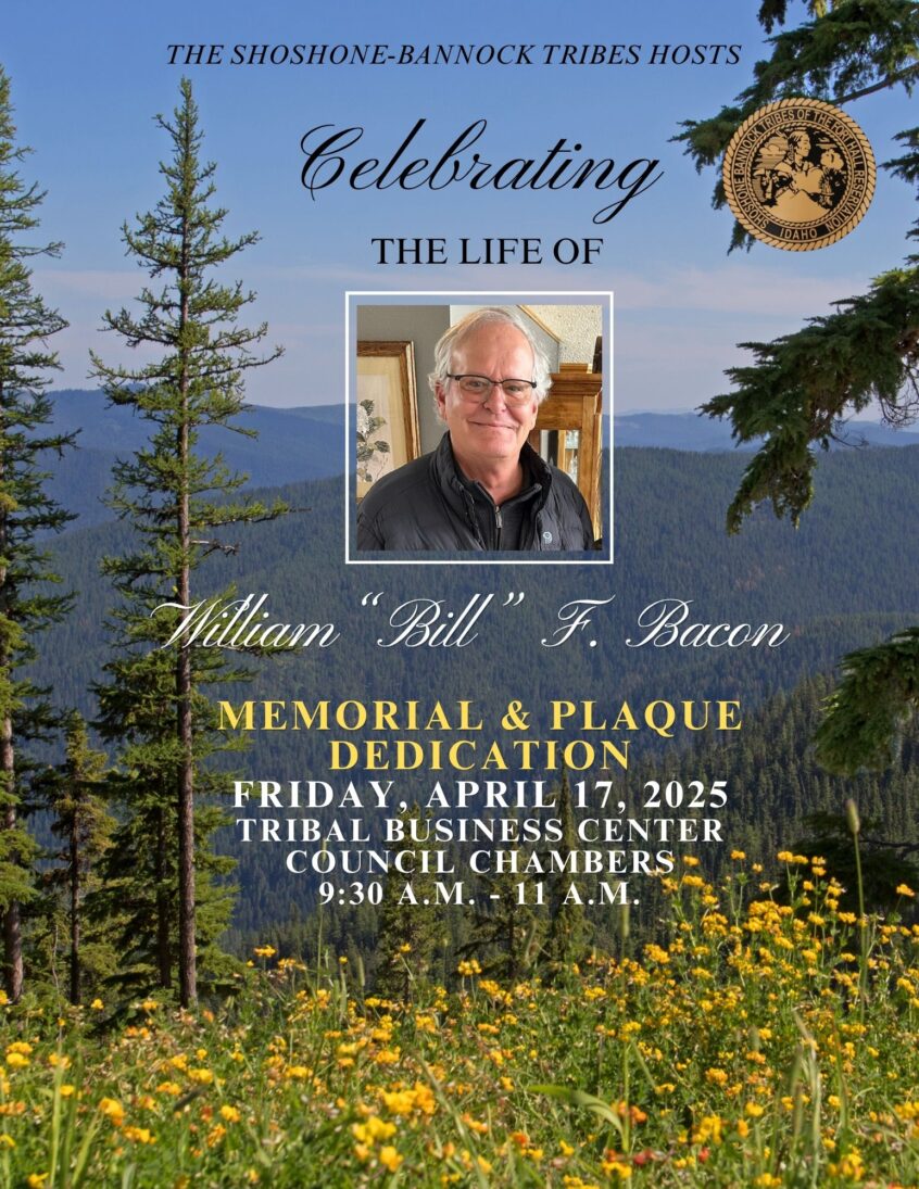 Shoshone-Bannock tribal attorney William “Bill” Bacon’s life will be celebrated Friday, April 17, 2026 with a memorial and plaque dedication from 9:30 a.m. to 11 a.m. at the Tribal Business Center Council Chambers.