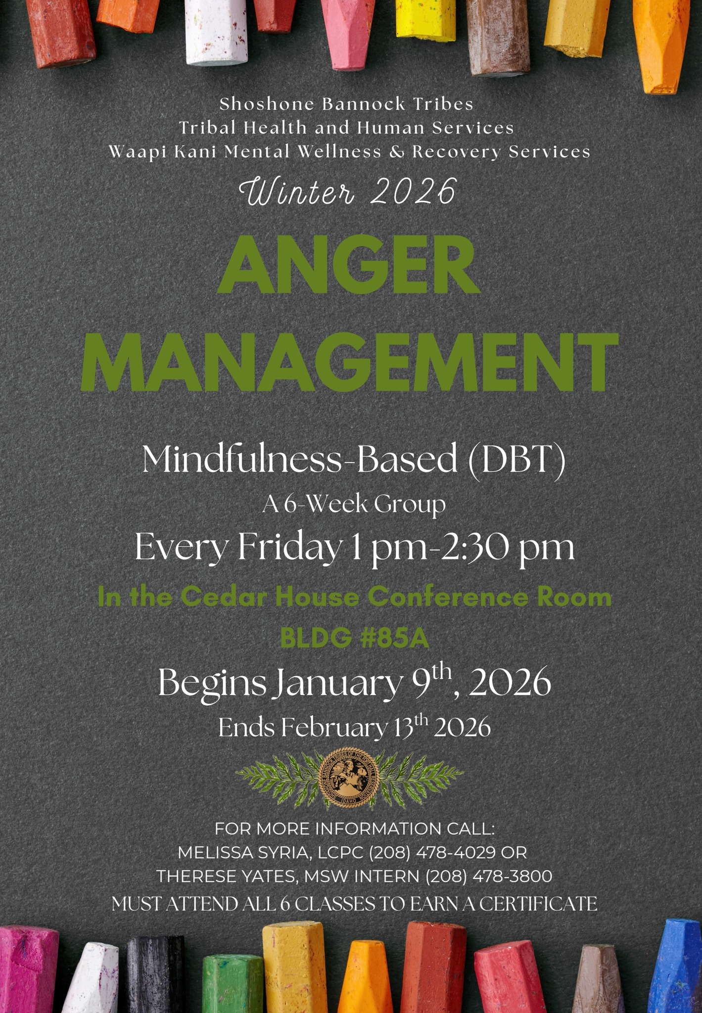 • Anger Management Class begins January 9, 2026