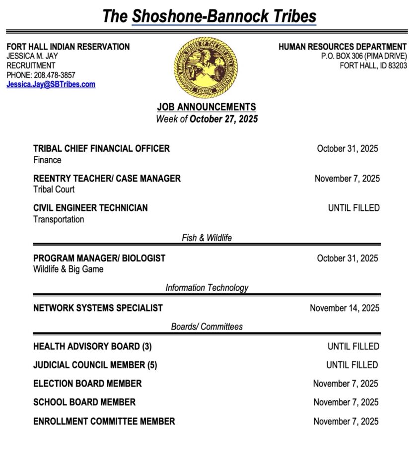 10/23/2025 In preparation for the 45th distribution, we are asking tribal members of the Shoshone-Bannock Tribes to adhere to the following deadlines. The deadline for direct deposit submissions and cancellations … Read More