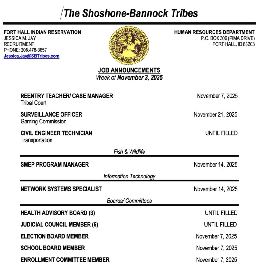 THURSDAY NOVEMBER 6th, 2025 STARTING @11:00 AM, FORT HALL RODEO GROUNDS PLEASE BRING YOUR OWN BAGS FOR YOUR POTATOES! SPONSORED BY Land Use Department and Canyon Falls Farms For more … Read More
