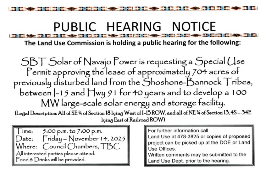 The Land Use Commission is holding a public hearing for the following: SBT Solar of Navajo Power is requesting a Special Use Permit approving the lease of approximately 704 acres … Read More