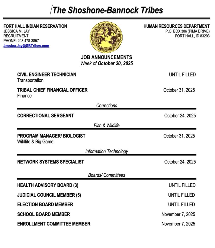 10/23/2025 In preparation for the 45th distribution, we are asking tribal members of the Shoshone-Bannock Tribes to adhere to the following deadlines. The deadline for direct deposit submissions and cancellations … Read More