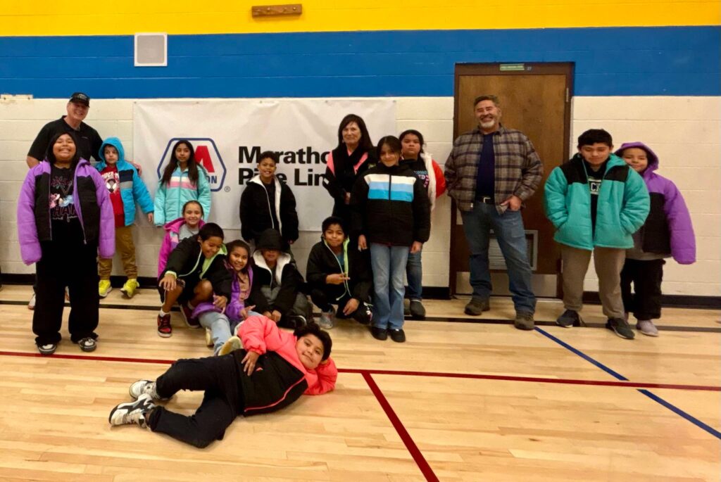 FORT HALL, Idaho – For the fourth year, more than 300 new winter coats were distributed to local children this week thanks to a partnership between Operation Warmth and Marathon Pipeline LLC, who teamed up to support students from Fort Hall Elementary, Chief Tahgee Elementary Academy, and the Shoshone-Bannock Early Childhood Program.